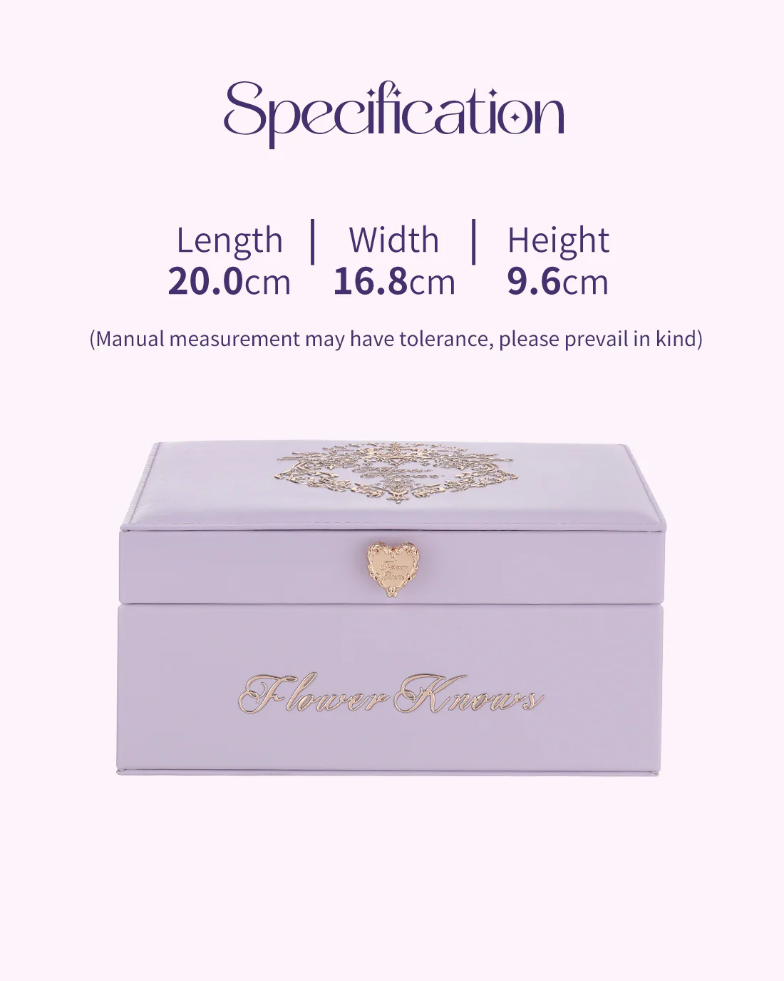 Inspired by the elegant styles and colors of the 18th-century Rococo period, this gift box is your portable vanity. Wrapped in luxurious violet leather and adorned with a charming love buckle, it combines exclusivity, sophistication, and artistry into one stunning package. Complete with its own mirror for beauty touch-ups on the go, it's as practical as it is stylish.