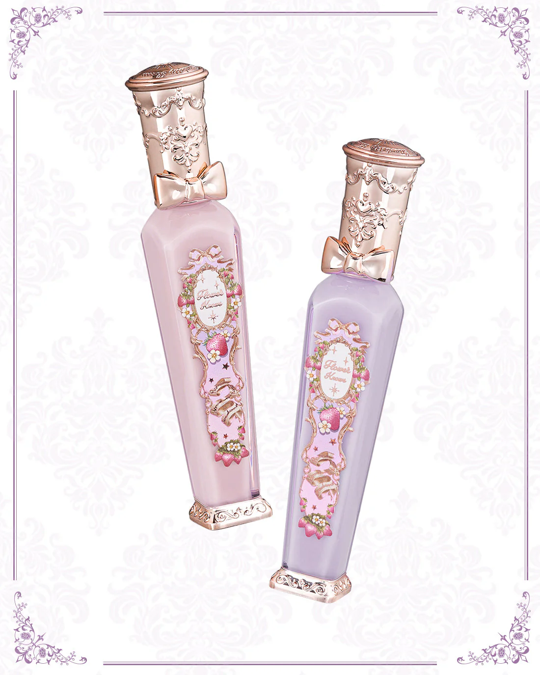 Discover Violet Strawberry Rococo, a limited edition lip gloss inspired by vintage perfume bottles and the elegance of the Rococo era. Its exquisite dual-layered acrylic packaging is both delicate and travel-friendly, with a unique violet hue that adds a touch of romance and exclusivity.